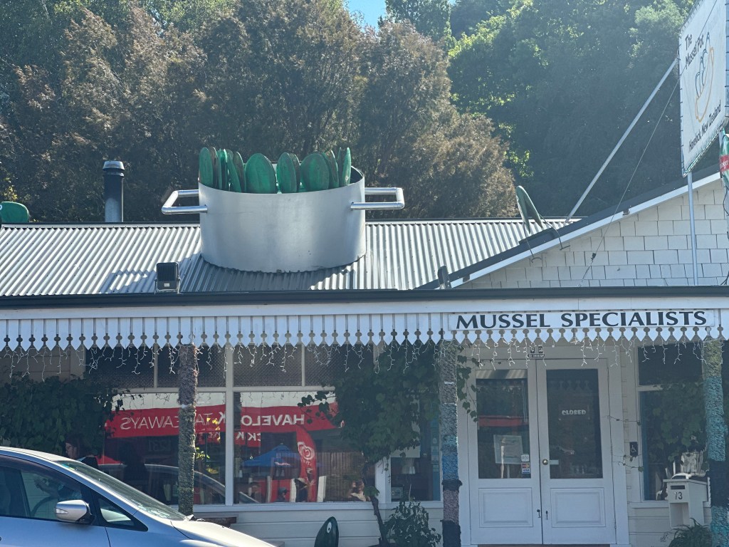Heute gab es Riesenmuscheln zum Znacht. Ich hoffe ich kriege nicht den Scheisser. Ich wollte zu Mr. Pot, weil er einen Muscheltopf auf dem Dach hat. Havelock mag diese Art von Marketing, es gibt auch ein Riesencornichon: