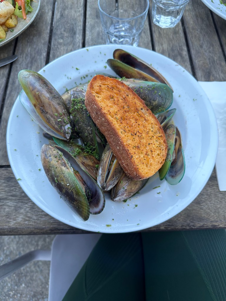 Dann ging es ab in den Apéro. Es hat eine nette French Crew. Sie sind auch Geniesser. Ich denke wir könnten Freunde werden. Sie lachen zwar über meinen schweren Rucksack, aber spienzeln meinen Zaubereien, die darin hausen, freundlich zu 💫.