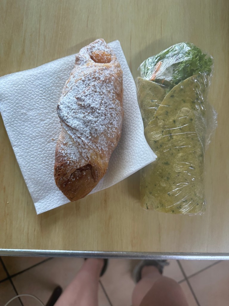 Lecker Frühstück (Aprikosengipfeli), laufen, heiss, Karte ziehen (grazie R <3), singen, baden. Nun Apéro. Alles mit Mira. Und teilweise mit Speedy Gonzales. Bis er davon gerannt ist. Sie ist toll. Sie hat ein mini Zelt. Bald gibt es Znacht. Ich denke Ramen.
