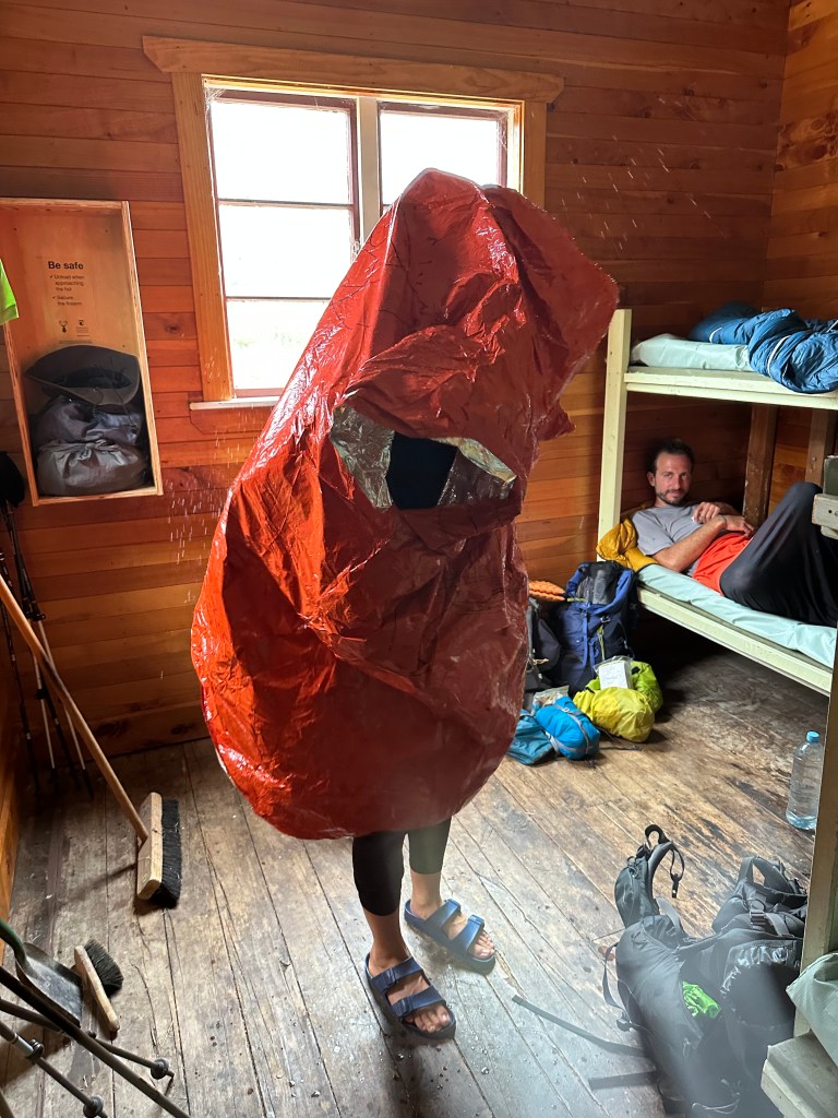 So war ich um die 10 Uhr in der Hütte. Ich wollte noch weiterlaufen, aber die Jungs haben mich davon abgehalten. Es gehe nicht auf mit dem Regen und den Flussüberquerungen. Ich müsse bleiben. Ich gebe nach, weil Louis ist auch dieser Meinung. Als er leise von seinem Kindle aufschaut, französische Poesie lesend, und sagt “Steffi c’est mieux de rester ici avec nous”, haben sie mich. Oder so. Ich vertraue ihm.
