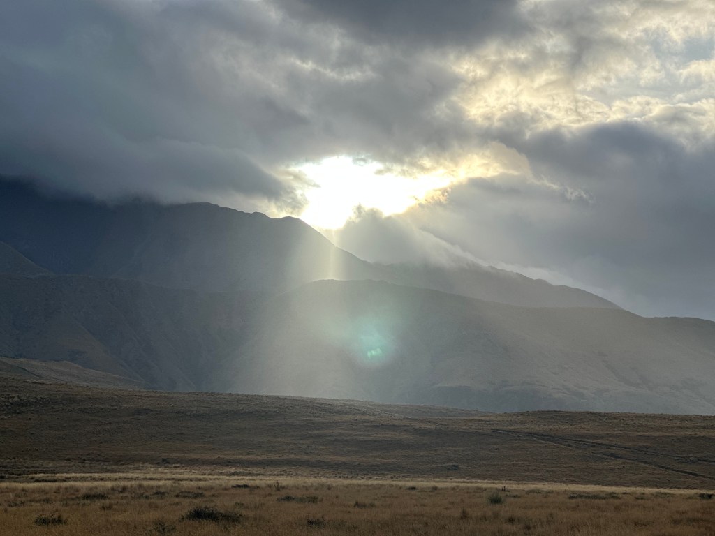 Wir sind frech und nehmen eine Abkürzung. Da labere ich im “village” (EIN Haus) eine Camperin auf einem Parkplatz voll (die sich das Village anschauen will 🤨) und wir kriegen in ihrem Camper einen ride nach Geraldine. Obergeil!