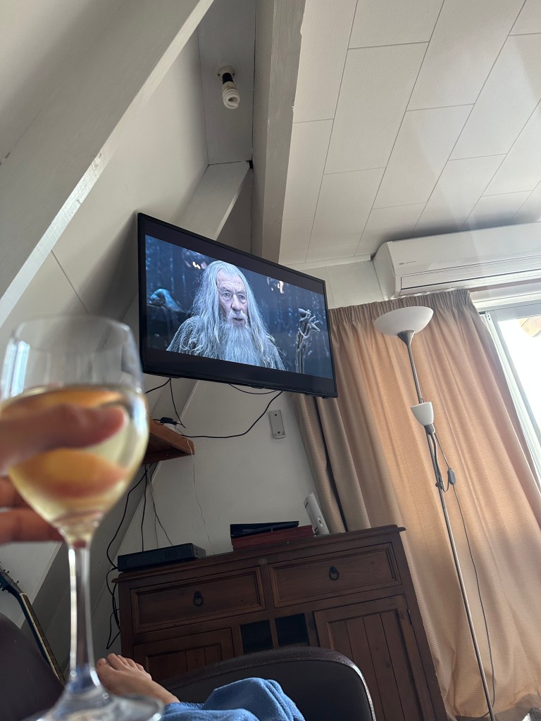 Unser Airbnb ist grandios. Ich habe mir ein Einzelzimmer ergattert. Bin auch die Älteste ☝️. Dafür kümmere ich mich um Apéro, Wein und Brownies. Sie sind fast wie zuhause.