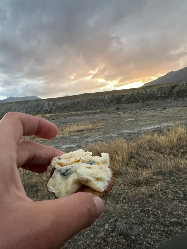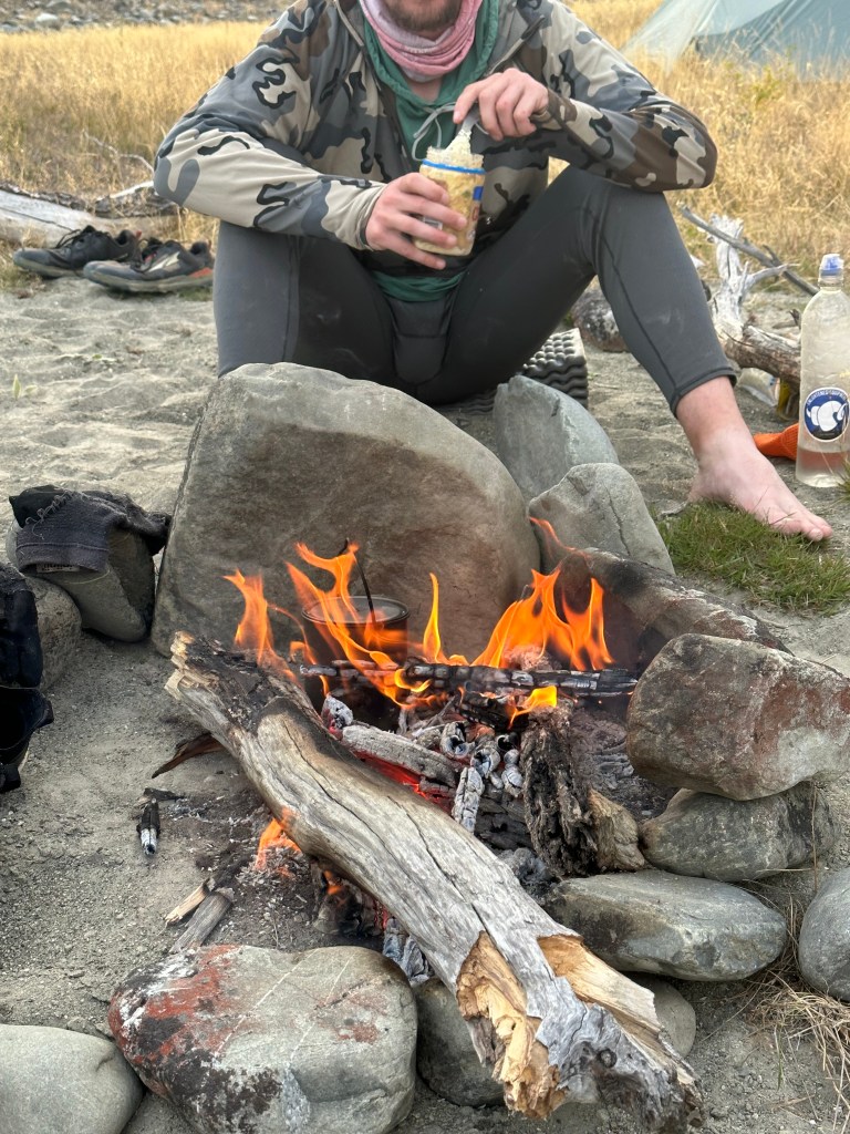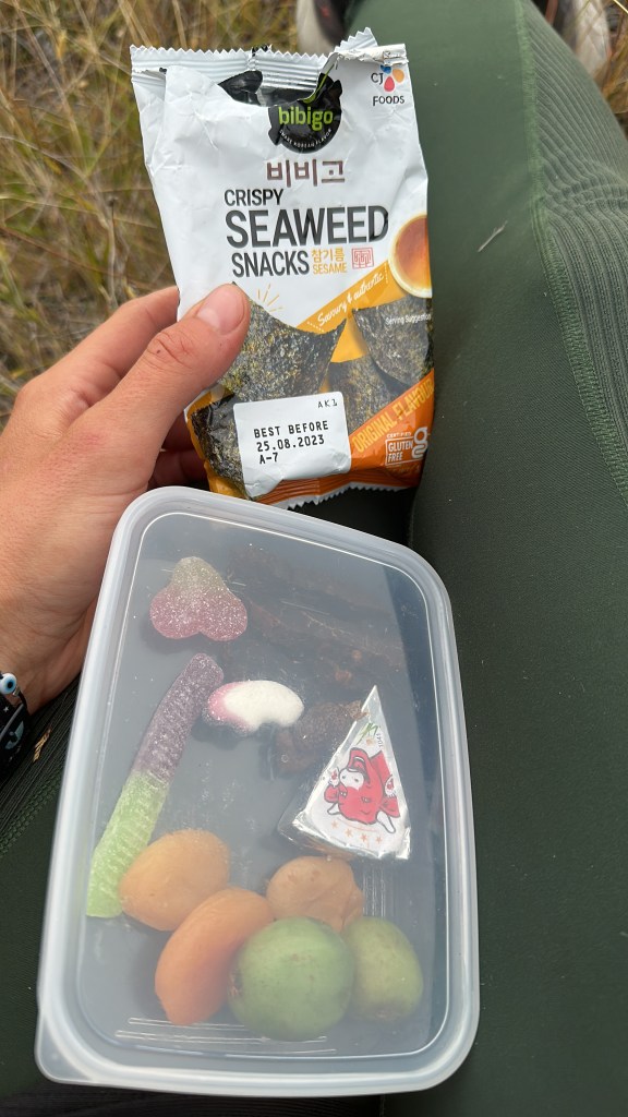 Im „Camp“ angekommen, gab es dann schnell Dinner. Ich meine ja ich bin kulinarisch shizzlig dran. Aber in der Hinsicht bin ich froh, bin ich mit den Oberhikern. Hier bin ich definitiv immer noch Madame Fairy CB. Ich sage euch das gibt es nicht. Jazz isst aus einer leeren Peanut Butter Box Ramen mit Kartoffelstock. Lauwarm angerührt (so lauwarm, dass sich nicht alle Stocki-Flocken auflösen das sehe ich genaustens). Grausam. Aber er mag es. No judging. Ich mag ihn. Die andern not so much. Das Abendbrot is(s)t somit eher dürftig. Zumindest das der andern, meine Ramen mit Gemüse, Kiri und Schinken haben alle besabbert. Das Abendrot war wiederum umso besser.